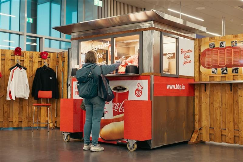 Bæjarins Bestu offers delicious hot dogs and drinks. Some people call this the Icelandic dish. Bæjarins Bestu is located at two locations at Keflavík Airport.